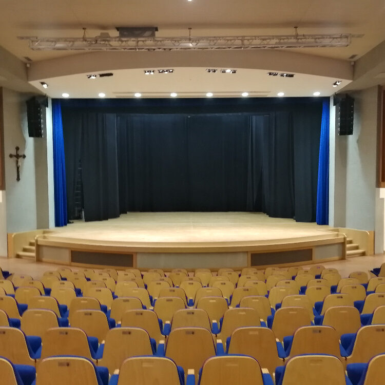 L’Auditorium ha una capienza massima di 980 posti con un ampio atrio per l’accoglienza degli ospiti e un ampio palco di 150 metri quadrati.