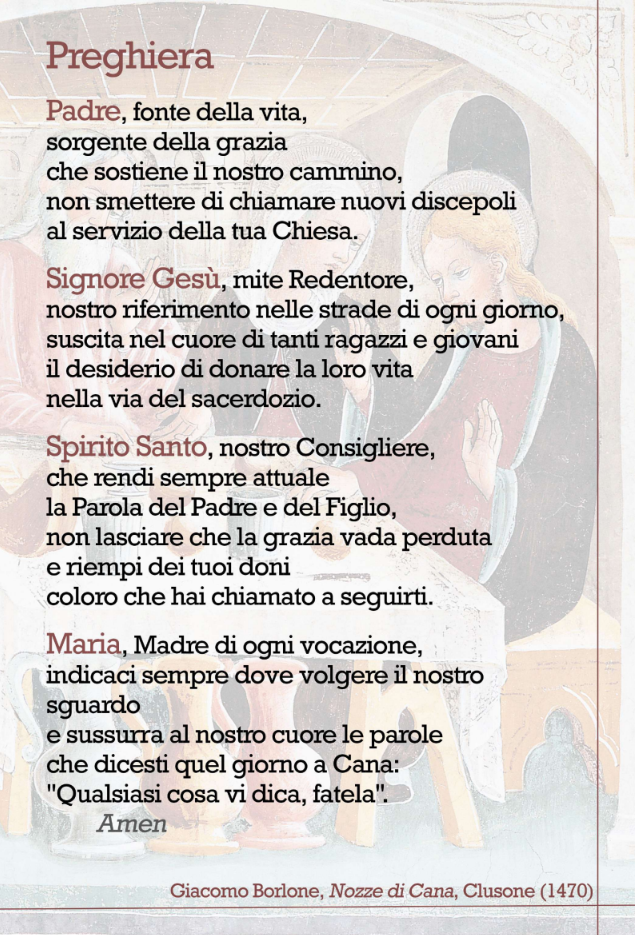 In coincidenza con tale giornata è possibile fare richiesta di momenti di proposta vocazionale per le diverse fasce di età (incontri per i ragazzi della catechesi, per gli adolescenti, i giovani e per i chierichetti), sia a livello parrocchiale che a livello di fraternità presbiterale.