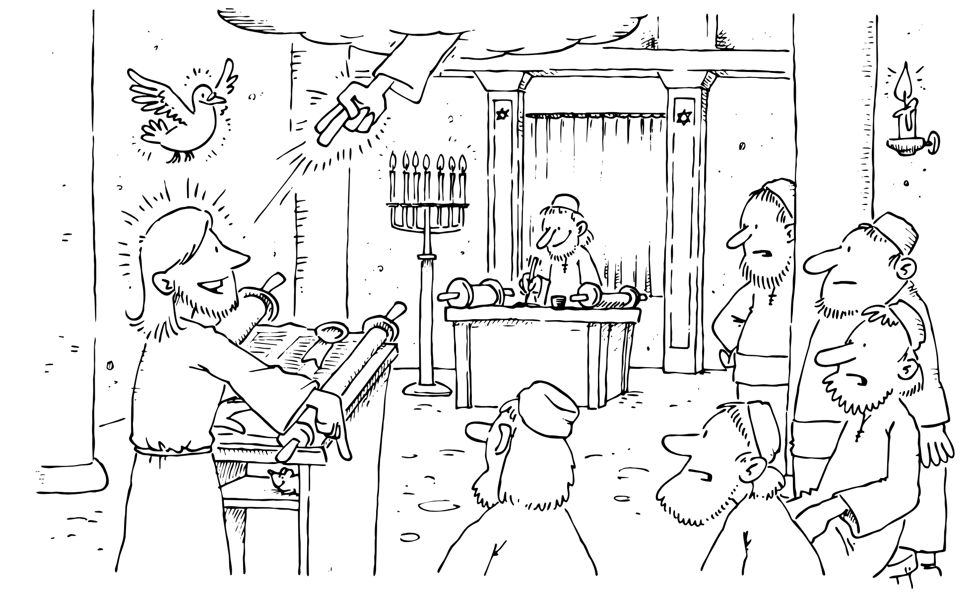 Riavvolse il rotolo, lo riconsegnò all’inserviente e sedette. Nella sinagoga, gli occhi di tutti erano fissi su di lui. Allora cominciò a dire loro: «Oggi si è compiuta questa Scrittura che voi avete ascoltato».